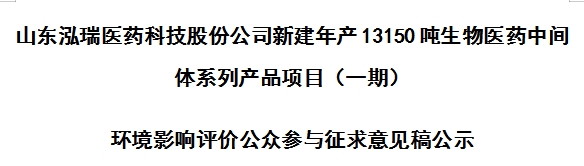 請查看附件 山東泓瑞醫藥科技股份公司新建年產13150噸生物醫藥中間體系列產品項目(一期) 環境影響...