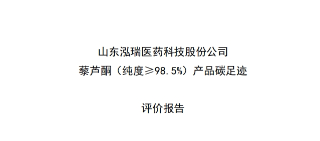 山東泓瑞醫藥科技股份有限公司 藜蘆酮產品碳足跡報告 第二版...